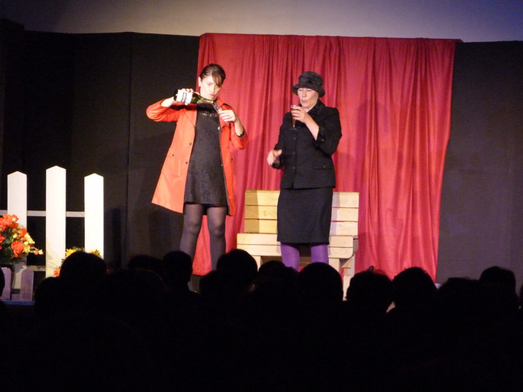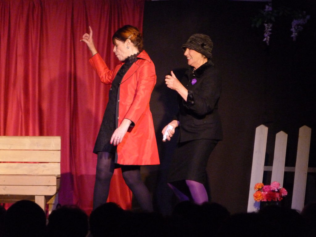 « A ta santé, Hubert! »(créée en 2015) interprétée par la Compagnie » Le Vestiaire des Filles » dont font partie Sylvie Piolet et Cathy Thoury est une comédie » délicieusement cynique où la gaité remplace la morosité et les rires les pleurs. »